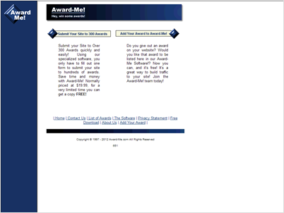 Desktop software allowing people to submit their websites to over 300 different 'web awards' automatically and instantly. -