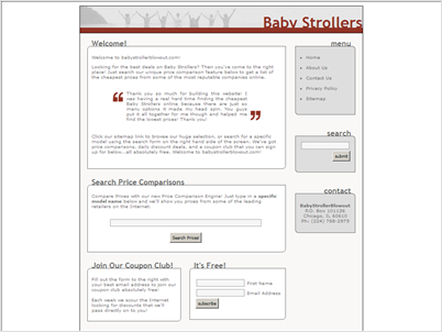 Thin Affiliate ecommerce site selling Baby Strollers via the Amazon Affiliate Program. -