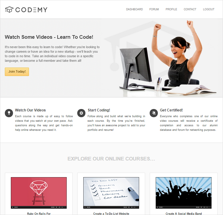 Educational Membership Website that teaches people to code using videos and hands-on help. Courses Include Ruby on Rails, and PHP. More » -