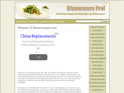Ecommerce Affiliate shop selling dinnerware products via the Amazon affiliate program. Sold the company 2014. -