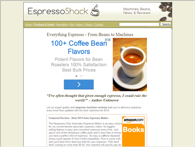 Ecommerce affiliate shop selling espresso machines via the amazon affiliate program. 100+ articles on espresso machines. Sold the company 2014. -