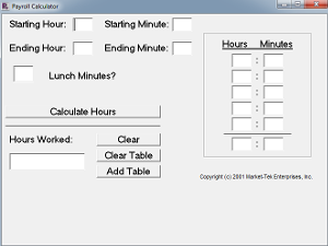 Simple software to help me enter payroll time and calculate hours worked.