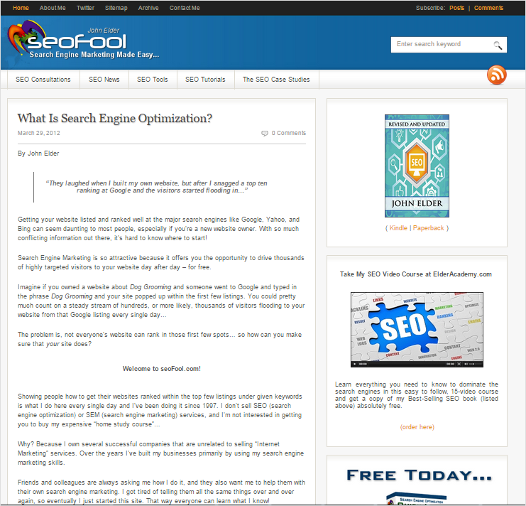 Search Engine Optimization explained in a straight-forward, no-nonesense, hype-free way.