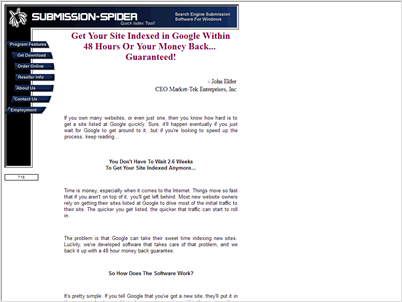 Multi-site search engine submission software sold as an upsell to my Submission-Spider Software. -