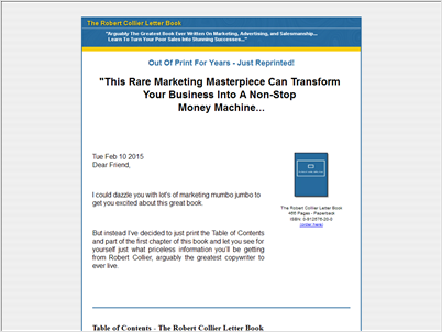 Website dedicated to selling the classic marketing book "The Robert Collier Letter Book", a book about copywriting written by Robert Collier. -